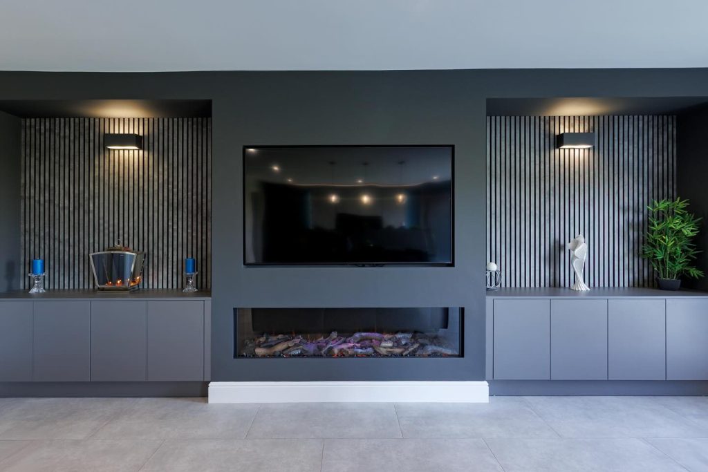 - Integrated lighting within the bespoke media wall, creating a focal point in the living space