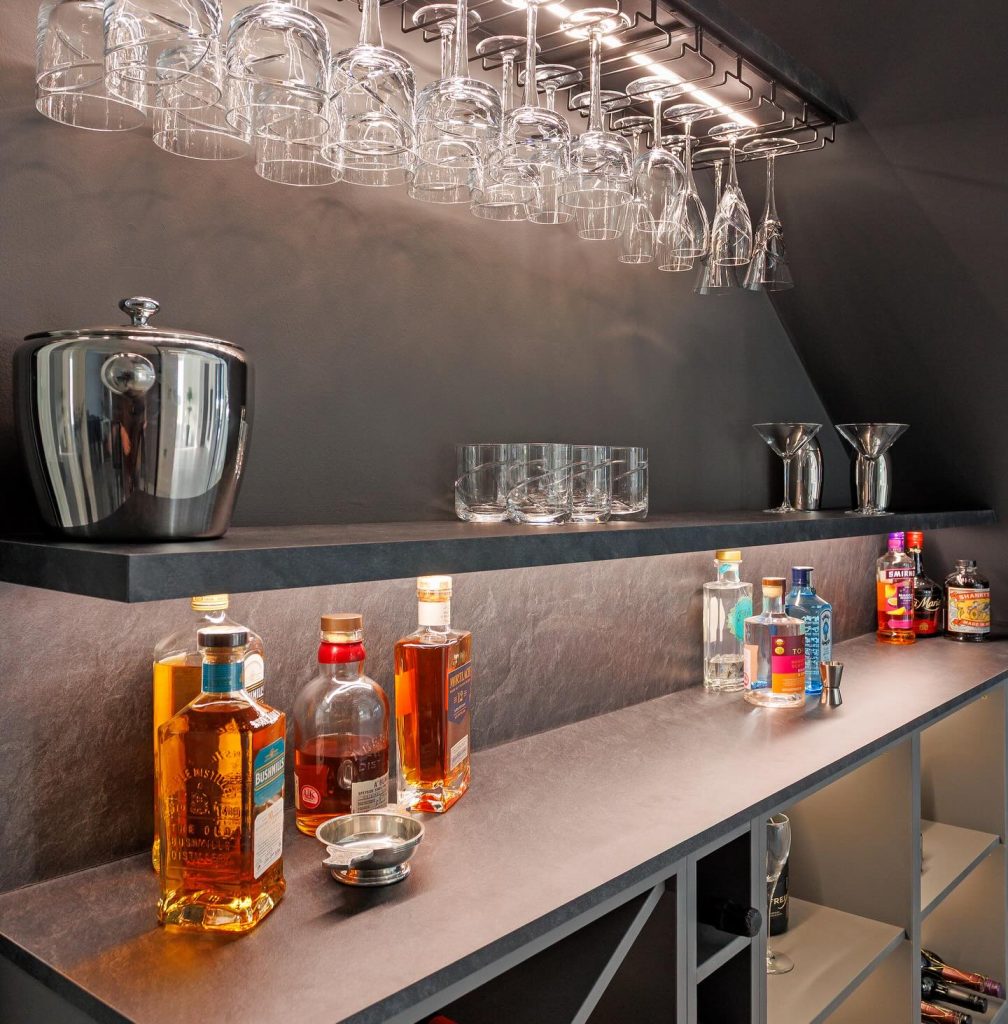 - Integrated lighting to highlight the bar area without overpowering it